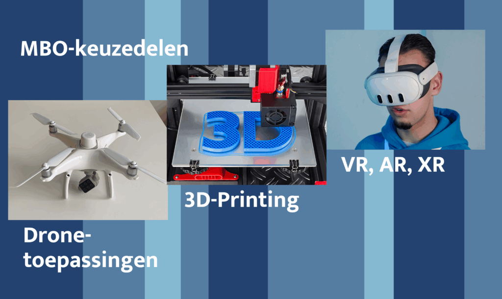Vanuit de Regio Deal zijn mbo-keuzedelen ontwikkeld waarin studenten van VONK leren over dronestoepassingen, VR en 3D-printing. Keuzedelen zijn een aanvulling op de basisopleiding: iedere mbo-opleiding bestaat uit een vast diplomagericht deel (het kwalificatiedossier) en een vrij te kiezen deel, de keuzedelen. Dat biedt flexibiliteit en verdieping: studenten kunnen zich met keuzedelen verbreden (iets leren buiten hun beroep), verdiepen (meer leren binnen hun vakgebied), of voorbereiden op doorstroom naar een hoger opleidingsniveau.
